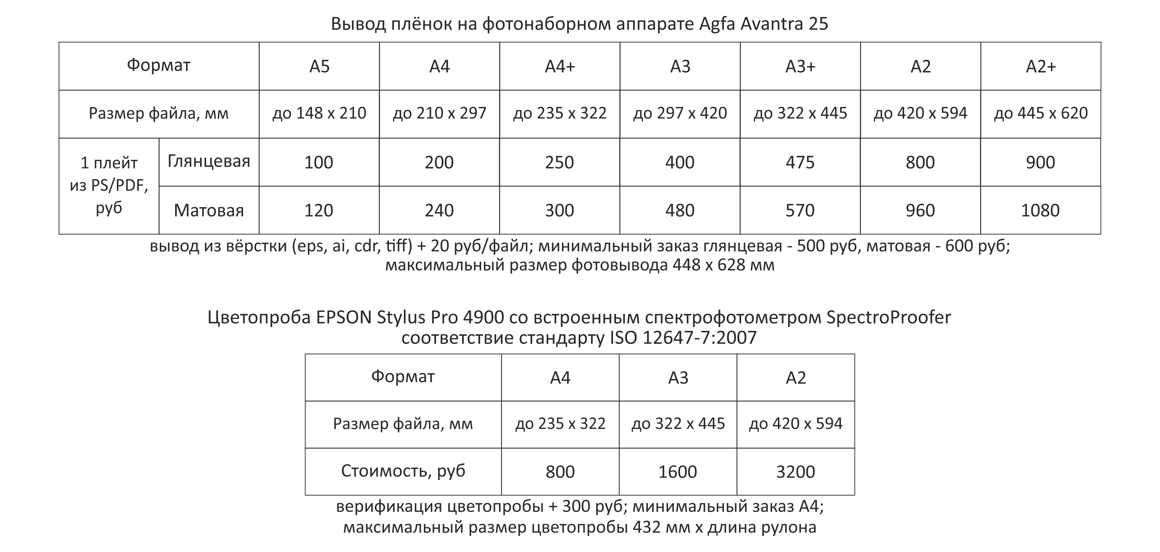 - Матовая фотопленка ширина 457 мм - максимальный формат вывода 448 х 628 мм (по запросу).